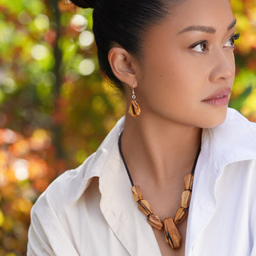 Each wooden gem is delicately shaped to represent the water droplet, combining water with the wood forest. These little saplings carry the calm and solace of nature, allowing you to bring their peaceful energy with you wherever you go.